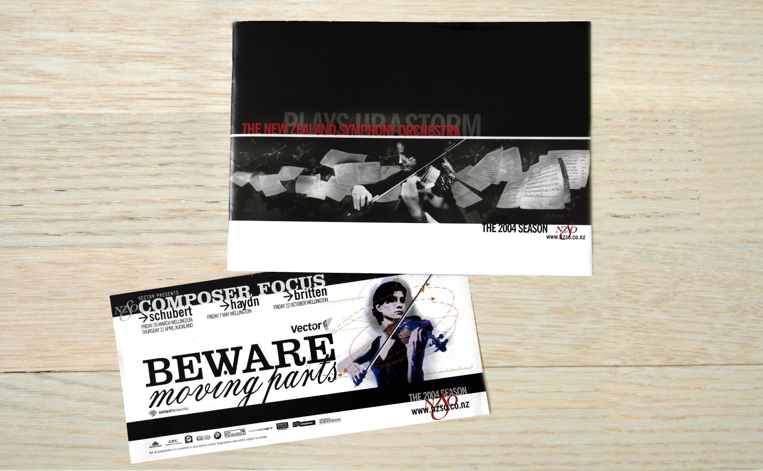 A rejuvenated identity to appeal to a younger demographic was the brief for the NZSO’s 2004 season design. With a brace of art music design already under my belt, this was something we were totally ready to take on.