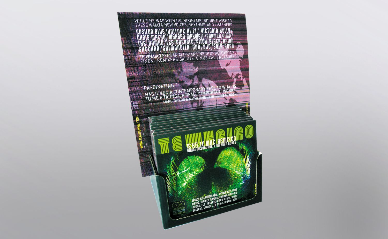 I spent some time with Maureen Lander, who contributed the original albums haunting cover photograph. And some design elements presented themselves during mastering sessions when the engineers display monitor crashed, reforming the music’s waveforms into blazing horizontal bands of noise. Even the SKU barcode ultimately got in on the act. For me, as co-producer of the album, its musical creation hadn’t been easy, but the design seemed to flow effortlessly. Te Whaiao was awarded Maori Album of the Year in 2006.