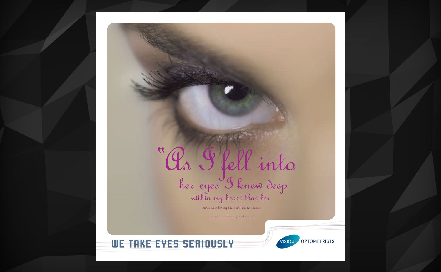 Being a contracted ‘radiator’ for smart branding house Radiation, enabled a rare disciplinary purity – focussing purely on design – in particular typography as the agency coordinated strategy, copy, photography, and production throughout this brand rejuvenation for Optometry chain Visique. This was a project that made everyone involved feel good, that creative contributors were being perfectly supported and complemented by their peers. Also feeling good, we understand, the client, and customers.